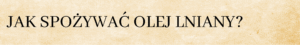 Olej lniany spożywamy przede wszystkim na zimno – nie ogrzewamy go i nie dodajemy do gorących potraw – w takich warunkach nienasycone kwasy tłuszczowe oleju ulegają degradacji, tworząc niepożądane dla zdrowia substancje.